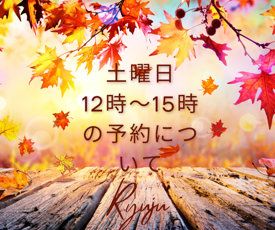 毎週土曜日、13:30~16時までは、龍樹鍼灸院にて〈龍樹会〉を開催しているため、その間のネット予約が取れないようになっています。