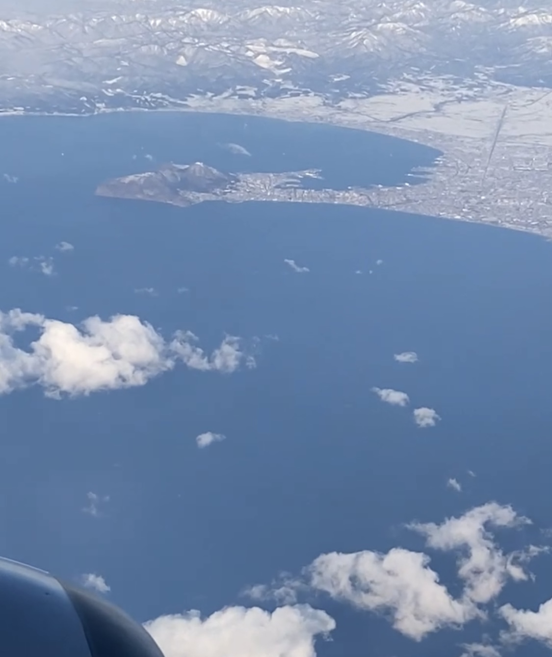 トップ画像は、上空から見た函館山です。特徴的な地形なので、飛行機から眺めてすぐ函館山だと分かりました。